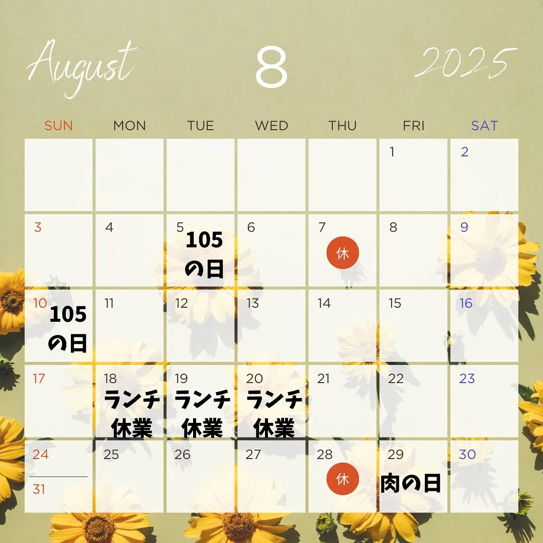 8月の定休日のお知らせ📢